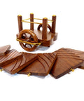 Mug coasters 6 pcs with Decorative Stand – MIS-0480 Mug coasters in a decorative stand are a hit when it comes to gifts for coffee and tea lovers. Coasters are made of wood what protects them against stains and burns after a hot cup. Set includes 6 coasters and a decorative cart-shaped stand. Part of the surface is occupied by decorative milled runners. Each coaster has a small handle attached to make it easy to pull out of the stand. Cart shaped stand is made of wood and brass elements. Specification: - Material: wood, brass- Colors: brown, gold- Dimensions: 14 x 11 x 12 cm Mug coasters work well as: - Gift for coffee lover- Gift for tea lover - Gift for your grandmother- Gift for a work colleague