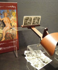 Stereoscope H60 Based on original created by O. Wendell H. on 1862. Original 3D viewer with 12 images. Victorian toyMDF and sapelli wood (natural wax, polished), cardboard, printed paper, plastic optical glasses, aluminum and zamac brass bathed, leather imitation (polipiel)Wymiary: Height 12cm, Width: 15cm , Lenght: 37cm, Weight: 310gr