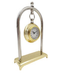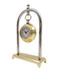Vintage style fireplace clock - M02 The vintage style fireplace clock will be a practical decoration for a fireplace shelf, desk or dresser. It blends well with cabinet, English and retro arrangements. Clock in metal case with excellent contrast between white dial and black hands and numerals allows you to comfortably read the time. Battery powered clock. A charming clock that will take you back in time! Clock in vintage style - specifications: - Material: metal, glass- Dial: white- Hands: black- Numbers: Roman numerals, black- Color: Gold, silver- Power supply: battery- Dimensions: 23 x 13.5 x 5.5 cm- Style: vintage, retro