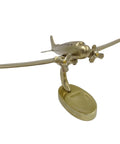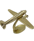 Large metal model twin engine airplane – 90549 Large metal model of a twin-engine airplane is a great gift for the aviation and aviation enthusiast. The decorative airplane model will work well as a gift for a pilot on the occasion of obtaining a pilot's license. Model specifications: - Material of construction: aluminum- Dimensions: 19.5 x 16.5 x 29 cm - Color: gold - Stand on the base The seating of the model on the stand gives the illusion of a plane soaring into the sky. Elegant airplane figurine will look great on your desk, dresser or mantelpiece. Its golden color and form fit both modern and art deco style rooms.