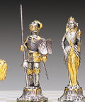 24K Gold Bronze Medieval Chess Set with Onyx Table & Chairs, Handmade in Italy