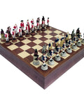 American Revolution Chess Set, Hand-Painted Resin, Walnut Maple Board & Storage
