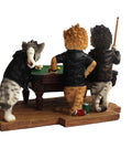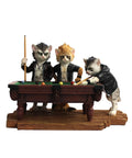 A whimsical three-cat sculpture captures a lively billiards scene, featuring biker-clad cats gathered around a pool table. Crafted for character and charm, it brings playful personality to shelves, desks, and display cabinets while complementing modern, eclectic, or vintage-inspired home decor.
