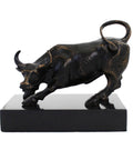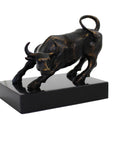 Brass Bull Statue on Black Marble Base, Handmade Italian Sculpture 18x12x16cm