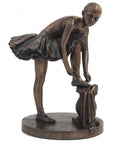 Graceful and refined, this hand-finished figurine captures a young ballerina preparing for dance, complete with a delicate tutu and a timeless bronze-tone finish. Its elegant silhouette brings subtle movement and artistry to any space, making it a thoughtful accent for living rooms, bedrooms, nurseries, or dance studios.