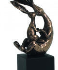 Elevate your home decor with a refined bunny sculpture featuring two rabbits poised atop a cube base. Crafted from high-quality resin and finished in a bronze-toned patina, this elegant figurine adds warmth and character to a shelf, mantel, or tabletop display.