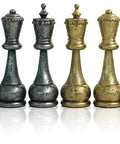 These luxury chess pieces offer a balanced presence on the board, pairing durable metal construction with an elegant gold and silver finish. Ideal for collectors and enthusiasts seeking classic-style metal chess pieces that complement a wide range of boards and interior settings.