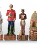 Historical themed chess pieces depicting English vs Zulus, crafted for collectors and players who appreciate detailed, hand-painted artistry. Each piece is cast in durable resin to capture fine textures and expressive features, offering a distinctive centerpiece for a themed chess set or display. The hand-painted finish enhances the sculpted detail while the sturdy build ensures lasting use.