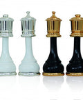 Handcrafted chess pieces in classic French style, combining solid brass and wood for a refined, timeless look. Each piece is meticulously finished by hand, with the brass elements plated in gold and silver tones and the wooden sections lacquered in black and white for a smooth, durable surface. Made in Italy, these luxury chess pieces offer elegant contrast and substantial weight, ideal for display and regular play.
