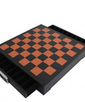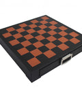Genuine Leather Chess Board with Storage, Black/Brown, 48x48 cm, Italian