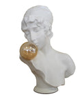 Girl Blowing Bubble Gum Statue - White Resin Sculpture, 53cm, Italian Made