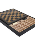 Gold Black Faux Leather Chess Board with Storage, 28cm, Handmade in Italy