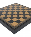 Gold Black Faux Leather Chess Board with Storage, Checkers & Backgammon, 48cm