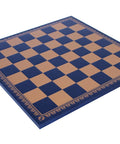 Gold Blue Faux Leather Chess Board, Handcrafted in Italy, 45x45 cm, 5 cm Squares