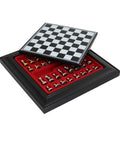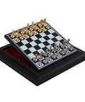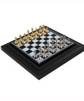 This gold and silver plated metal chess set is designed for durable everyday use and stylish display. The compact size is ideal for travel, desks, and small spaces, while the integrated storage keeps the complete set secure between games.