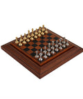 Ideal for display, travel, or refined casual play. This small chess set combines durable metal craftsmanship with a space-saving board, offering a sophisticated accent to any desk, study, or living room.