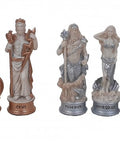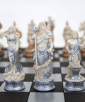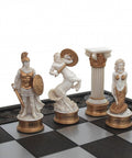 This hand-painted chess set showcases Greek mythology with intricately detailed resin pieces and a distinctive resin board inspired by a historical theme. Each figure is carefully finished to highlight character and texture, creating a display-worthy set that is also suitable for regular play.
