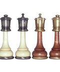 Classic-style chess pieces crafted in brass and wood, meticulously hand-finished for a refined, timeless look. The brass components feature a gold and silver coating that enhances durability and provides an elegant contrast to the natural wood. Ideal for elevating your chess set with heirloom-quality pieces.