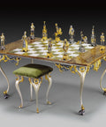 Handmade 24K Gold-Plated Bronze Chess Set, Onyx Table & Chairs, Italy