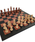 Handmade Acacia Wood Chess Set, Genuine Leather 44cm Board, Made in Italy