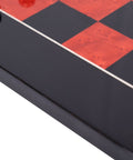 A refined handmade wooden chess board crafted from high-quality wood and finished in a lacquered black and red palette with a dominant black tone. This elegant, Italian-made chessboard offers a smooth playing surface and striking contrast for excellent piece visibility, making it a timeless addition to any game room or décor.