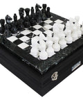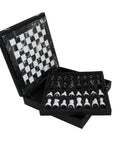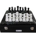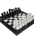 Handmade Black & White Marble Chess Set with Leather Case, 40 cm Board, Italian