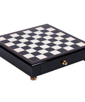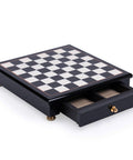 Handmade Black Wooden Chess Board with Storage Drawer, 32 cm, Made in Italy