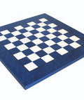 A handcrafted wooden chessboard with a glossy blue finish, designed for refined play and display. Made from high-quality wood and crafted in Italy, it offers a smooth, durable surface with precise square alignment for consistent gameplay.