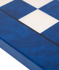• Board: Handcrafted, lacquered wooden chess board, blue/white