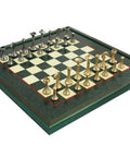 Handmade Brass Chess Set, Gold & Silver Pieces, Maple 45cm Green Board, Italy