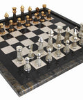 Handmade Brass Chess Set, Gold & Silver Plated, Wooden Board, Made in Italy