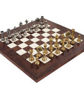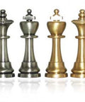 • Materials: Brass chess pieces with gold and silver plating; walnut wood chess board