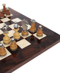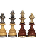 - Handcrafted chess pieces made from silver and gold brass combined with wood