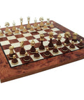 Handmade Brass & Wood Chess Set with Elm Board 42cm, Classic, Made in Italy