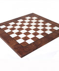 Benefits include a balanced aesthetic pairing of metal and wood, durable construction for long-term use, and an elegant elm wood chess board that enhances both gameplay and display. Ideal as a handmade chess set, brass chess pieces set, wooden chess board set, and Italian-made chess set for enthusiasts seeking quality and timeless appeal.
