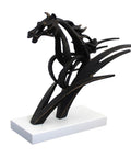 This stylized horse sculpture adds a refined, artistic touch to shelves, consoles, and desks. Crafted from durable zinc alloy with a brass finish, each piece is hand-detailed for a unique character. A solid marble base provides stability and a timeless look, blending modern decor with classic elegance.