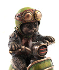 Italian Bronze Resin Cat on Scooter Statue, Handmade Home Decor Gift, 14x7x14cm