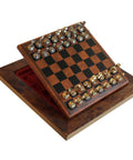 Benefits include a stable playing feel from weighted metal chess pieces, a compact footprint for easy placement, and built-in storage to keep the set protected between games. A distinctive choice for collectors, gifting, or refined home and office decor.