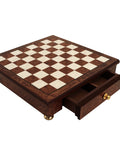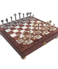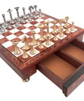 Italian Handmade Brass Chess Set, Gold & Silver Plated, Elm Board with Drawer