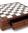 Italian Handmade Wood & Marble Chess Board with Storage Drawer, 60x60 cm