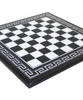 Handcrafted wooden chessboard featuring a refined black and white lacquer with a black-dominant design and intricate decorative patterns. The smooth, durable finish enhances both daily play and display, offering a sophisticated accent for home or office.