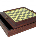 Italian Handmade Wooden Chess Board, Brass Effect, Storage, 38 cm