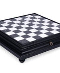 Italian Marble & Wood Chess Board with Storage Drawers Handmade Luxury 55 cm