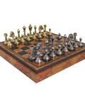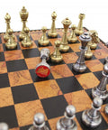 Italian Metal Chess Set with Faux Leather Board, Storage + Checkers & Backgammon