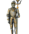 This medieval knight figurine offers timeless appeal for collectors, adds character to interiors, and complements traditional or eclectic decor with its detailed armor and durable pewter construction.