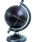 - Materials: Faux leather globe surface; satin-finished metal structure