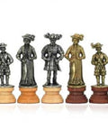 Handcrafted historical chess pieces inspired by Landsknecht figures, combining metal and wood with refined detailing. Each piece features a gold and silver layered finish for a distinguished, heirloom-quality look.