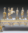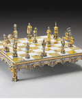 Landsknechts vs Vatican Warriors presents a historical theme rendered in sculptural detail. Each piece is cast using traditional techniques and finished with a true 24K gold layer. The board rests on distinctive feet, with a bronze frame accented with real gold.