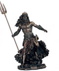 An impressive large-scale mythological sculpture that captures the commanding presence of the ocean god. This detailed piece features a bronze-toned finish over high-quality resin, with meticulous hand-finishing that highlights the trident, flowing robes, and dynamic movement for a striking focal point in any room.