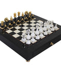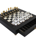 Luxury Gold/Silver Brass & Wood Chess Set, Handmade Italian Board with Drawer